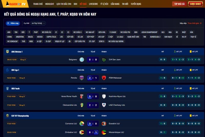 Điểm mình thích là Ra Khơi TV không chỉ cập nhật các giải lớn như Ngoại hạng Anh, La Liga, Serie A, mà cả những giải “ít spotlight” như V-League, Aean Cup, thậm chí cả U23 hay các giải trẻ. Nghĩa là chỉ cần anh em quan tâm tới trái bóng tròn, thì lên đây đều có đủ dữ liệu.